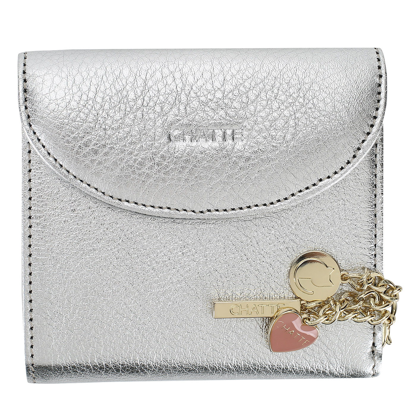 Складное кожаное портмоне Chatte Amelie shine CHA-6470SC/CIN/AE-6T_pc - 2000558256209 серебряный натуральная кожа 9,5 x 10 x 2 Цена 5148 руб. купить в интернет-магазине PanChemodan.ru в Москве